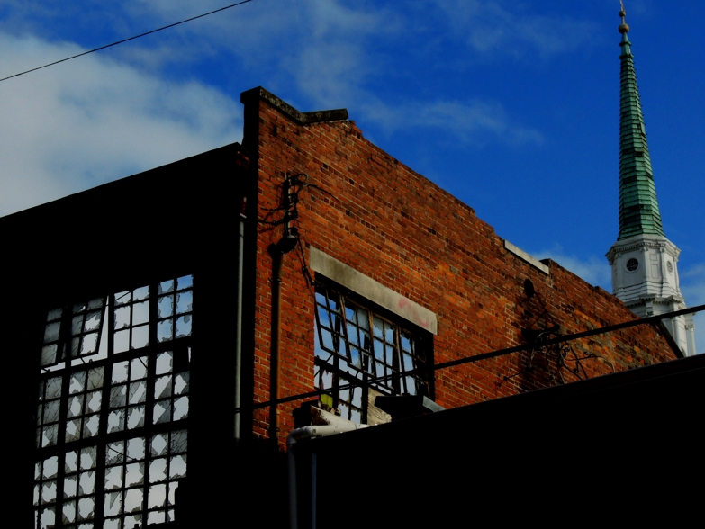 For instance, here is the view out my bathroom window this morning: the corner of 36th and Whitaker Streets.