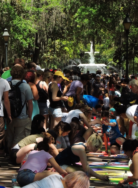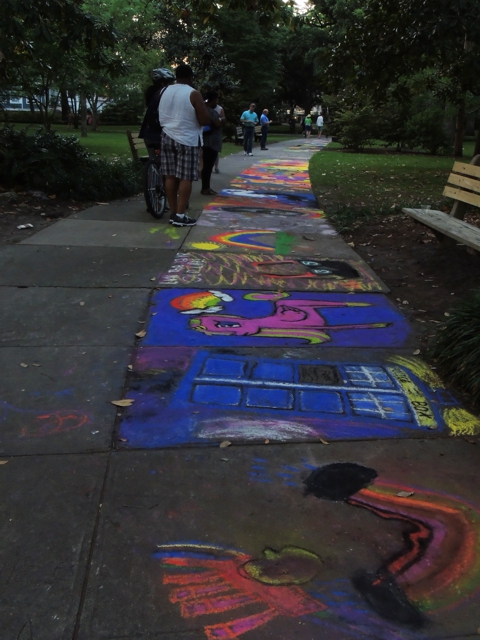 Last Saturday in my adopted hometown – Savannah, Georgia – the Savannah College of Art and Design (SCAD) held its annual Sidewalk Arts Festival. It is an event held in the grand Forsyth Park. Current, past and potential SCAD students get their own square of sidewalk, a big box of chalk, and the opportunity to create whatever they want in that little piece of real estate.